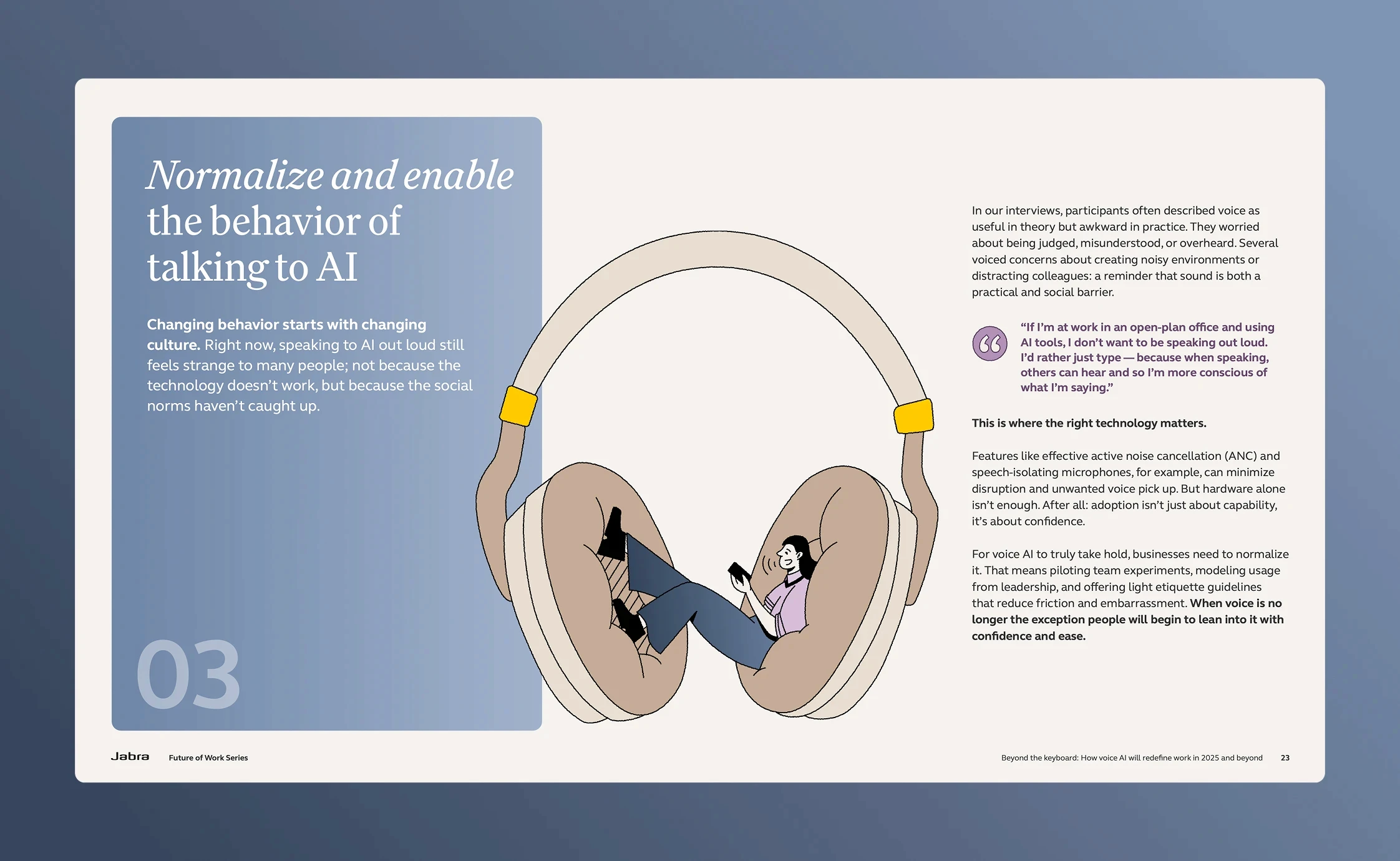 The new identity for Jabra’s Thought Leadership seamlessly integrates with the master brand, and allows them to build cultural capital and shape the future of work.