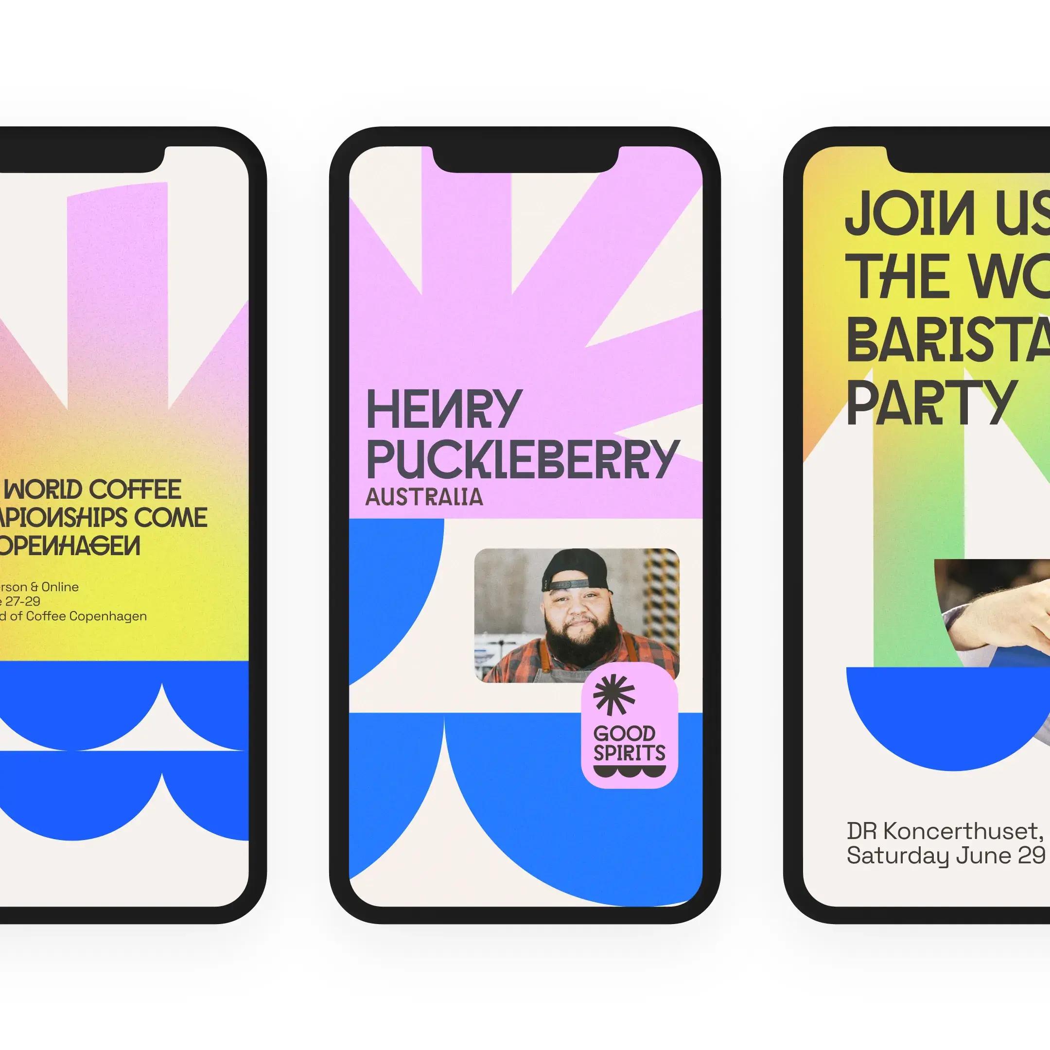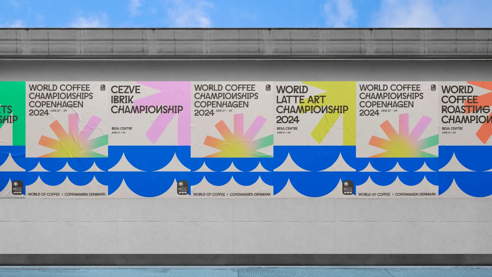 World Coffee Championships is a global coffee festival hosting competitions and awarding the best of the best in everything coffee. Copenhagen hosted four competitions in 2024, and we helped them brand the event with a bespoke identity based on the local Copenhagen culture. We expanded the organization's repertoire to include motion for event visuals, marketing, and advertising.