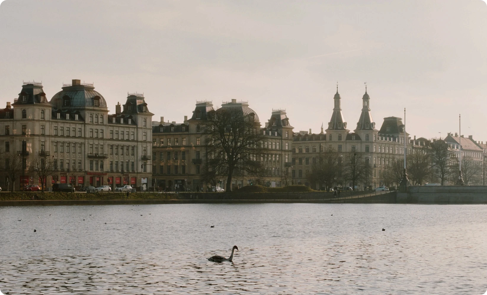 The monogram draws inspiration from Copenhagen’s lakes and a bespoke photography library adds depth, capturing the dramatic warmth of street life against a backdrop of striking architecture. These editorial-style images balance sleek sophistication with an authentic, real-world presence.