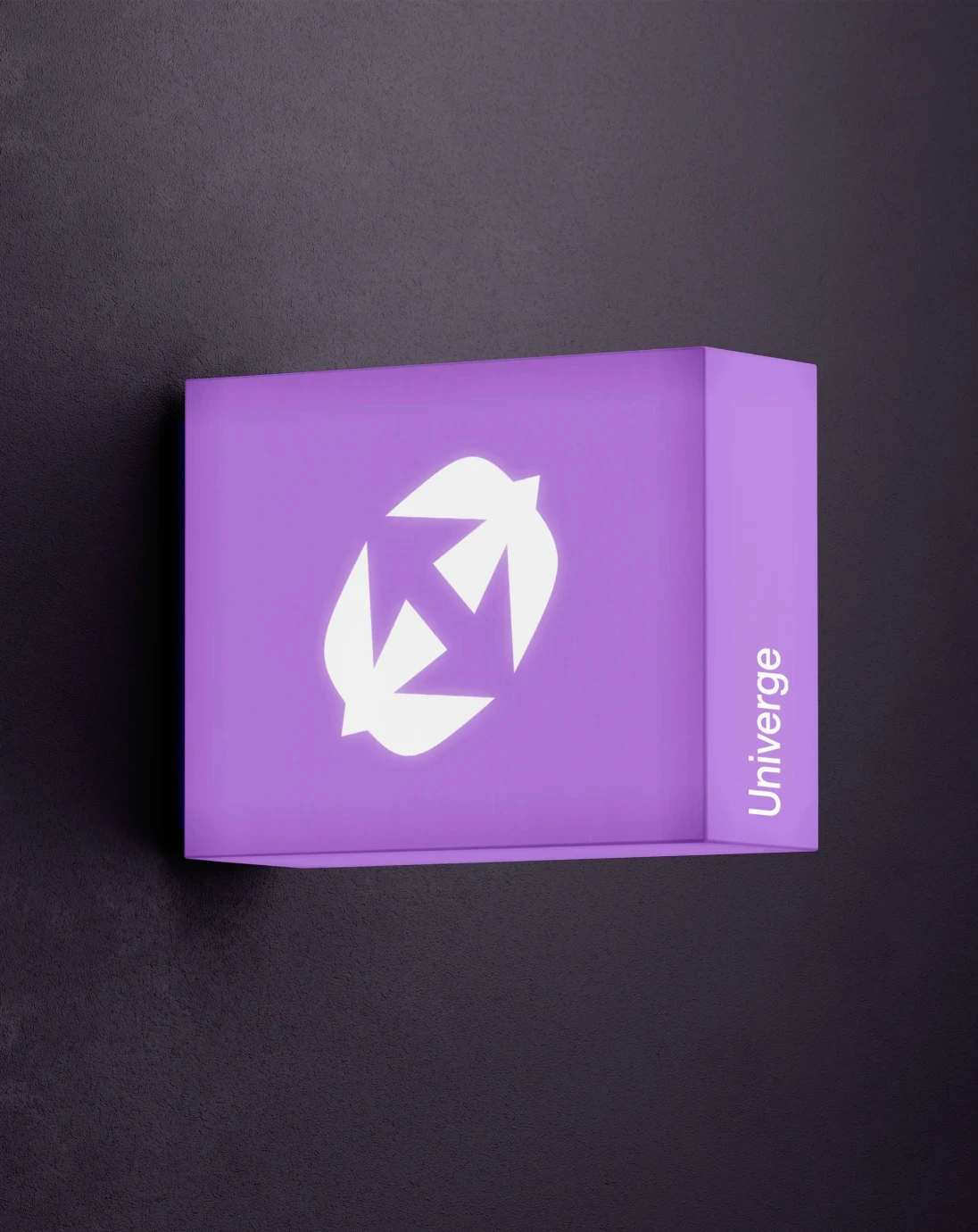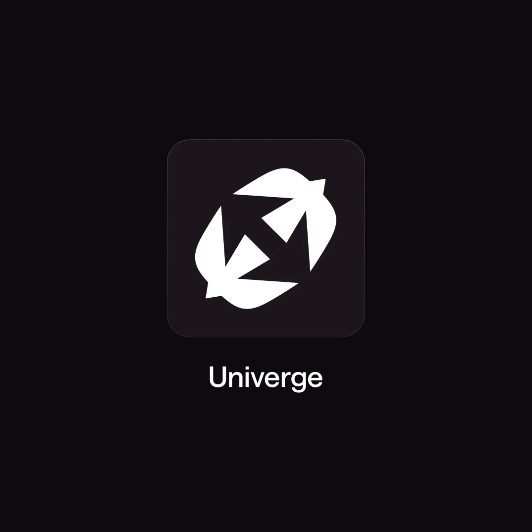 The swallow acts as a symbolic guide to the Univerge universe. Known for speed and navigation, it reflects the platform’s ability to move seamlessly across vast digital landscapes built from real-world data. Two diverging swallows create a sharp negative space arrow between them, signaling direction, control, and forward momentum.